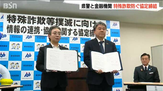 特殊詐欺やSNS型投資詐欺などの被害が過去最悪となるなか、新潟県警と金融機関が相互に情報提供を行う協定を結びました。