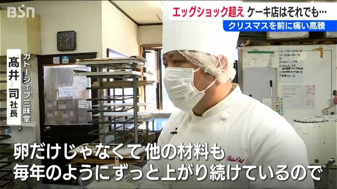 【三昧堂 高井司 社長】「卵だけじゃなくて他の材料も、毎年のようにずっと上がり続けているのでケーキ屋を続けていくには本当に厳しい」