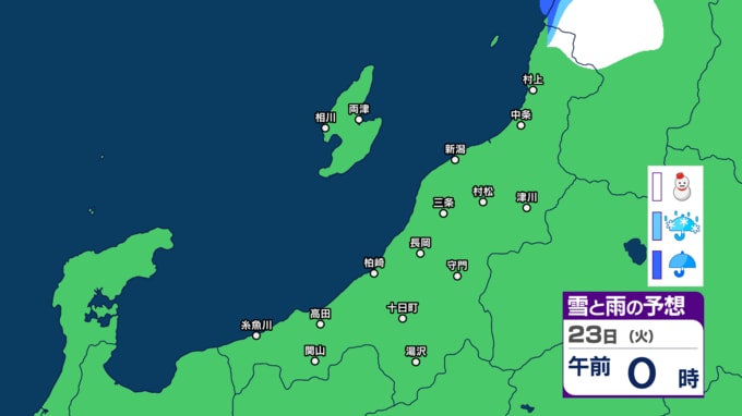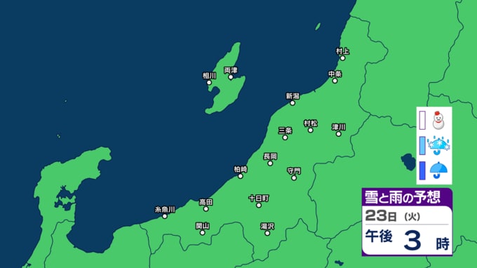 上越21℃、長岡18℃、新潟で17℃など20日の新潟県内は気温が高い状態に 21日は次第に雨の予報【今後の雨と雪のシミュレーション・20日午前11時更新】 2025年12月20日(土) 11:00 23日(火)の雨と雪のシミュレーション