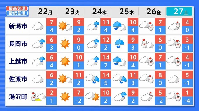なお、25日のクリスマスにかけては気温が高くなりそうですが、26日からは雪マークがついています。気温も下がり、この時期らしい寒さとなりそうです。