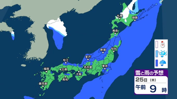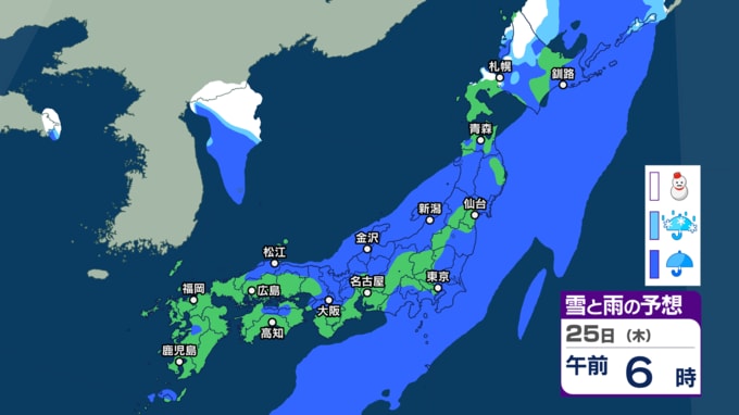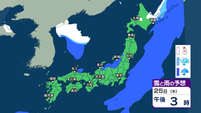 あす21日(日)は北海道から九州まで広い範囲で雨や雪 寒気が流れ込み22日(月)は日本海側で雪となる所も【今後の雨と雪のシミュレーション(3時間ごと)・20日午後8時更新】 2025年12月20日(土) 20:02