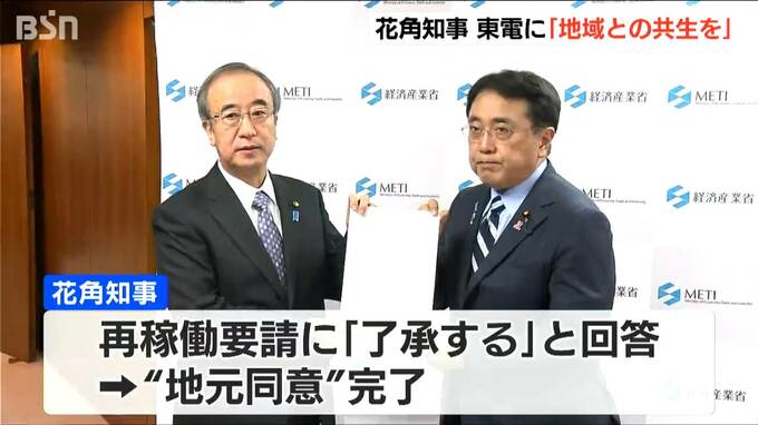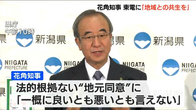 柏崎刈羽原発の再稼働をめぐり、地元同意の手続きを終えた新潟県の花角英世知事は、東京電力に対し「地域との共生」を求めたいと述べました。