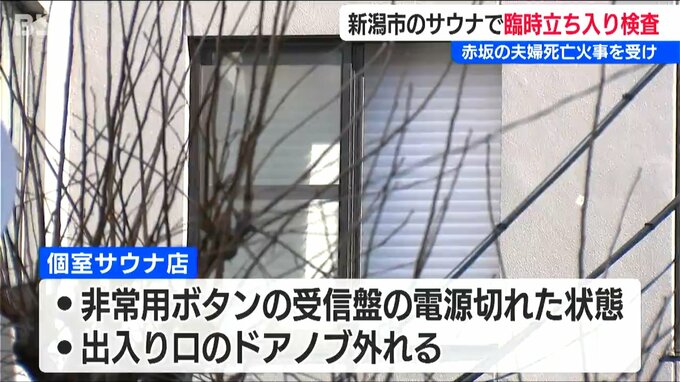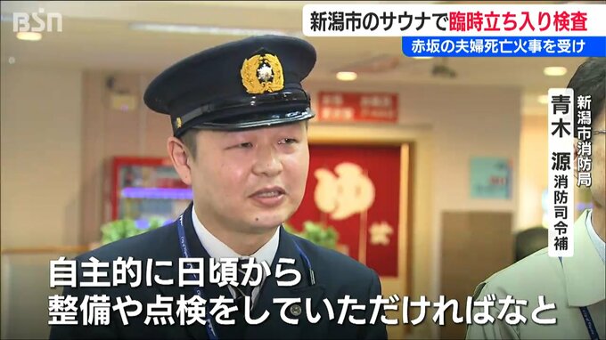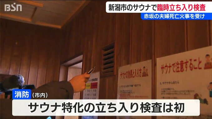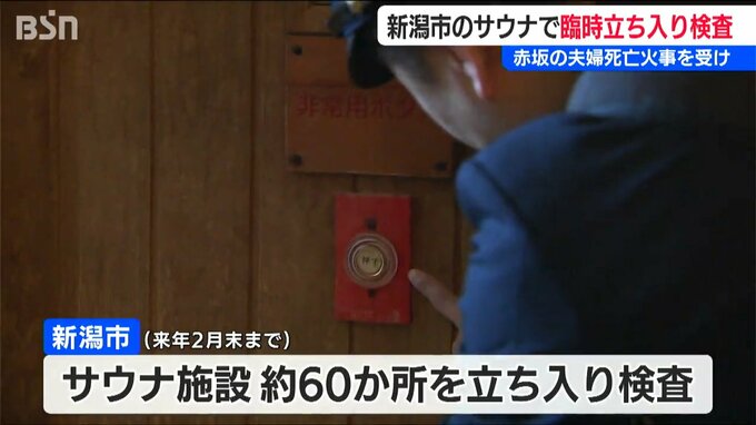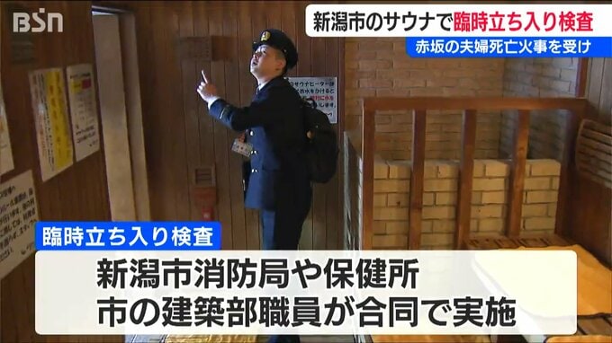 東京都赤坂の個室サウナ店で夫婦が死亡した火事を受け、新潟市でサウナが適切に管理されているかを確認する消防局や保健所などによる臨時の立ち入り検査が24日から始まりました。