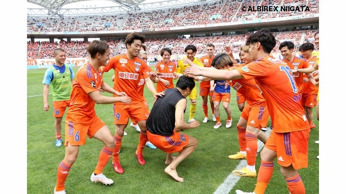 千葉選手と言えば、勝利後のチームパフォーマンス、通称“千葉劇場”。ビッグスワンで千葉選手を筆頭に、様々な選手がボウリングに流鏑馬など様々なパフォーマンスを披露しました。