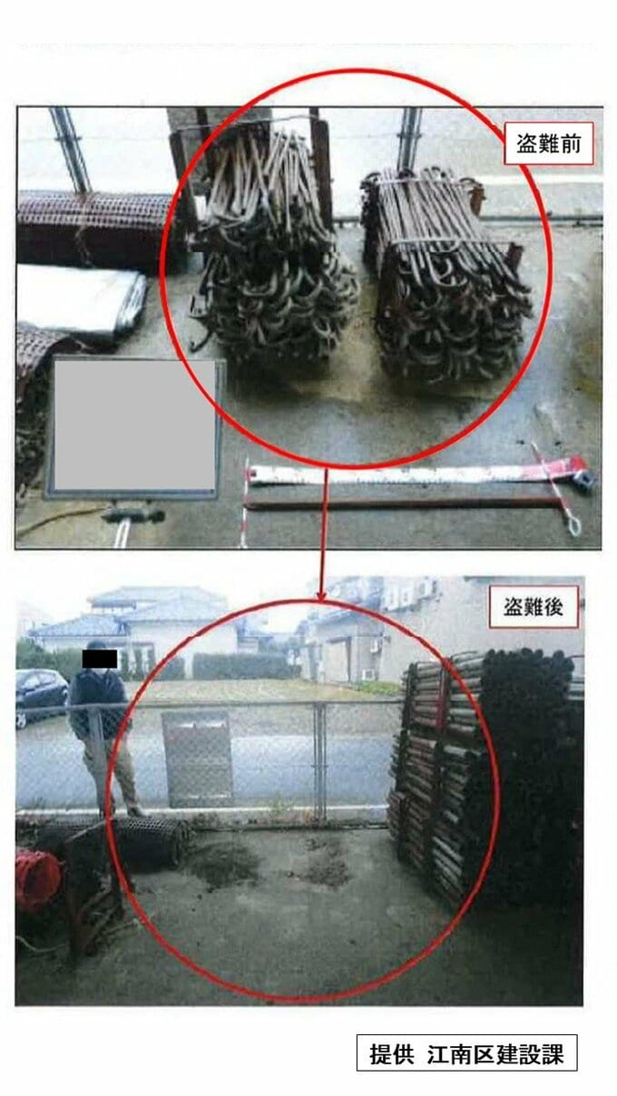 資材置き場は高さ1.2mのフェンスで囲まれていて、その中にアンカー資材を束にして置いてあったということで、何者かがフェンスを乗り越えて盗んだとみられます。