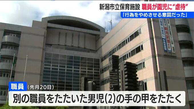 新潟市によりますと、今年11月20日、市内の保育施設で2歳の男の子がほかの園児を押した際に、これを止めようとした別の職員をその男の子が叩いたことを受け、職員が手の甲を1回叩いたということです。