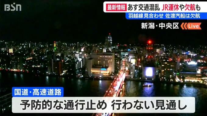 一方、新潟県内の国道や高速道路では今のところ、“予防的な通行止め”は行わない見通しです。