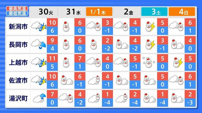 新潟県内も31日以降、雪のエリアが広がる見込みです。