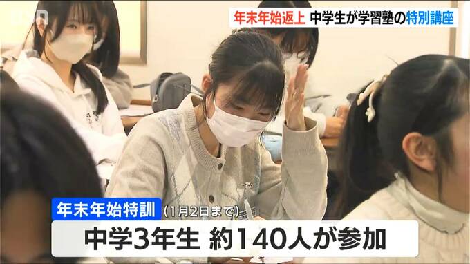 新潟市中央区の能開センター新潟校に集まったのは来年の高校受験を控えた中学3年生です。1月2日までの3日間開かれる特別講座におよそ140人が参加しています。生徒たちは1日6時間にも及ぶ、講義や模擬テストを受け年末年始返上で追い込みをかけます。