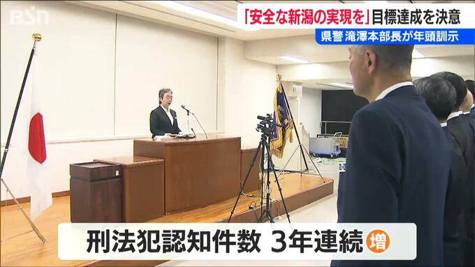 新潟県警の滝澤依子本部長が6日、幹部職員およそ100人を前に年頭の訓示を行い、刑法犯の認知件数が3年連続で増加していることに触れて、次のように述べました。