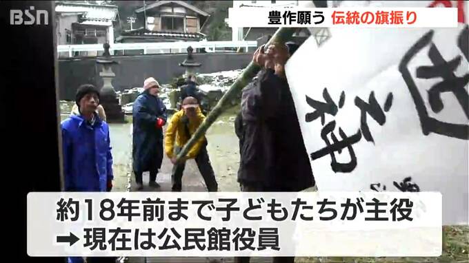 新潟県佐渡市で、新年の豊作を願い、旗を振りながら集落を練り歩く伝統行事が行われました。