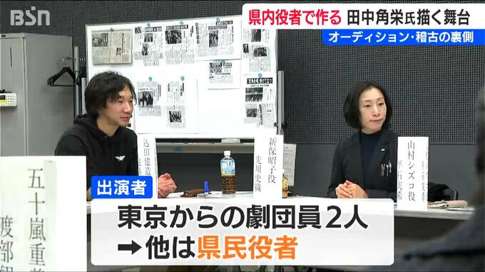 主演の田中角栄氏と事務所スタッフを演じる2人は東京からのプロの劇団員。