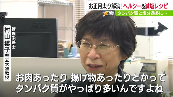 「お正月はオードブルみたいなのだと、お肉あったり揚げ物あったりとかって、まずタンパク質がやっぱり多いんですよね。そして、あとどうしても日持ちのするようなものだったり、まあお酒が進むようなものだと、塩分も多くなってしまって」