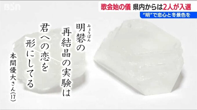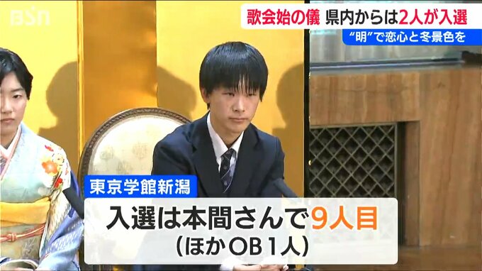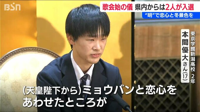 【東京学館新潟高校2年 本間優大さん】「とても緊張しました。(天皇陛下から)ミョウバンと恋心をあわせたところがところが秀逸であると言われました」