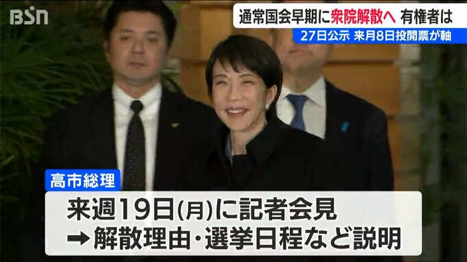 高市 総理は来週月曜日に記者会見を行い、解散の理由や選挙日程などについて説明するとしています。