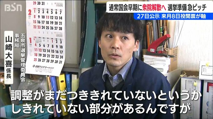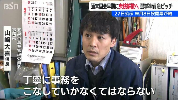 【五泉市 選挙管理委員会 山崎大喜 係長】「ハードワークにはなると思います。どのような日程が示されたとしても、準備が滞りなくできるようにしなくてはいけないので、そこに向けて、遺漏のないように、丁寧に事務をこなしていかなくてはならない」