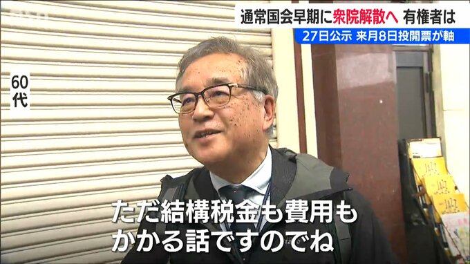 【60代】「結構、支持率、総理自体があるんで、狙うなら今の時期かなって気はしましたけど。ただ、結構税金も費用もかかる話ですのでね」