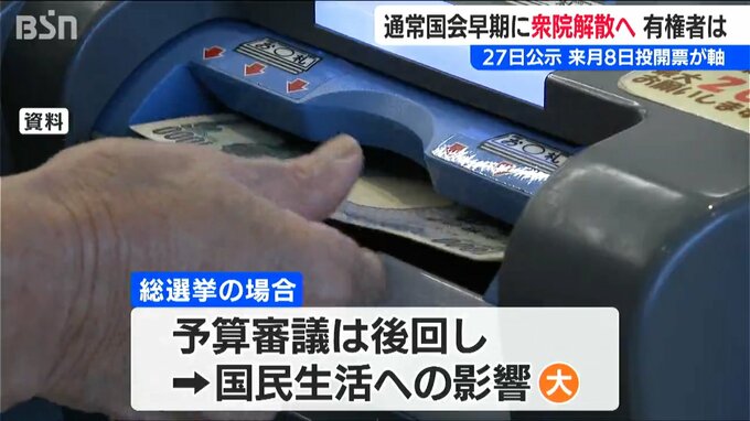 ただ、総選挙となれば予算審議は後回しとなり、国民生活に影響が出る可能性もあります。