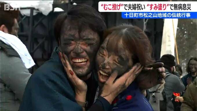 娘を取られた腹いせ?! むこ殿を5mの高さからを“放り投げる”伝統の奇祭『むこ投げ』と『すみ塗り』新潟県十日町市松之山 2026年1月16日(金) 06:33 国内 話題・グルメ 新潟県十日町市の松之山地域で、小正月の伝統行事が行われました。新婚の婿を雪の上に豪快に投げてしまうという『むこ投げ』です。「わっしょい、わっしょい!」と次々と担がれていく新婚の婿たち…。連れていかれ…
