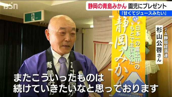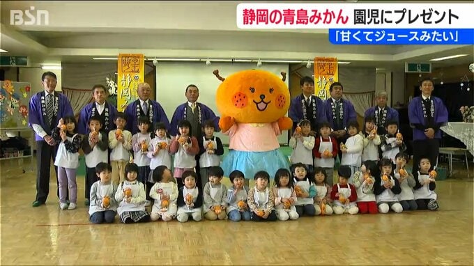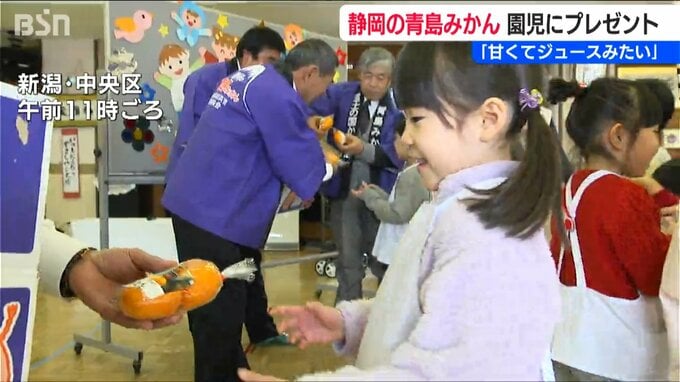 静岡県産のおいしいミカンを知ってもらおうと、「青島ミカン」が16日、新潟市の園児たちにプレゼントされました。