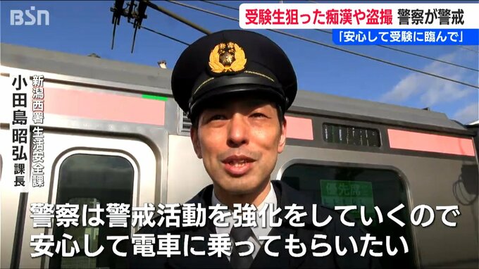 【新潟西警察署 生活安全課 小田島昭弘 課長】「安心して受験に臨んでもらえるように警察は警戒活動を強化をしていくので、安心して電車に乗ってもらいたい」