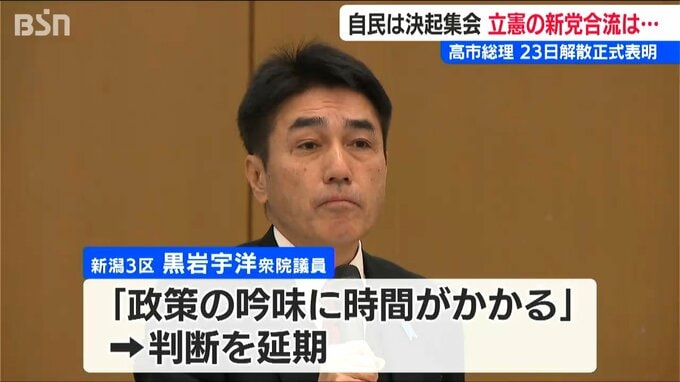 新潟3区の黒岩宇洋衆議院議員は、19日にも入党を判断するものと見られていましたが、「政策の吟味に時間がかかっている」として判断を延期しました。