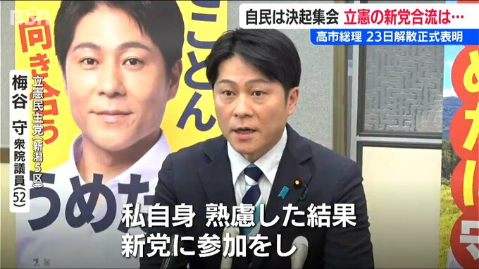 17日の選対会議で「雪国無視解散。高市総理の頭の中には、残念ながら我々雪国の暮らしのことなんて、これっぽっちも頭にないんじゃないか」と、高市政権への憤りをあらわにしていた新潟5区の梅谷守衆院議員は、19日午後に会見を開き「新党へ合流する」と発表しました