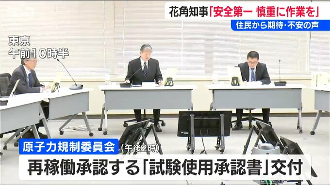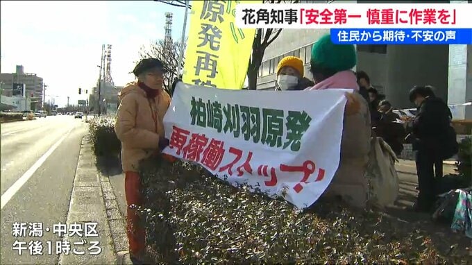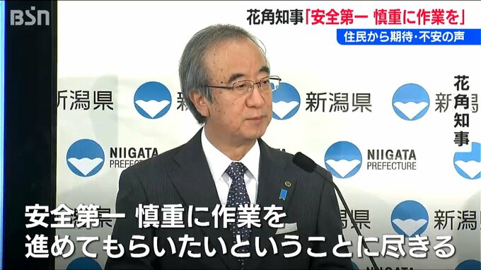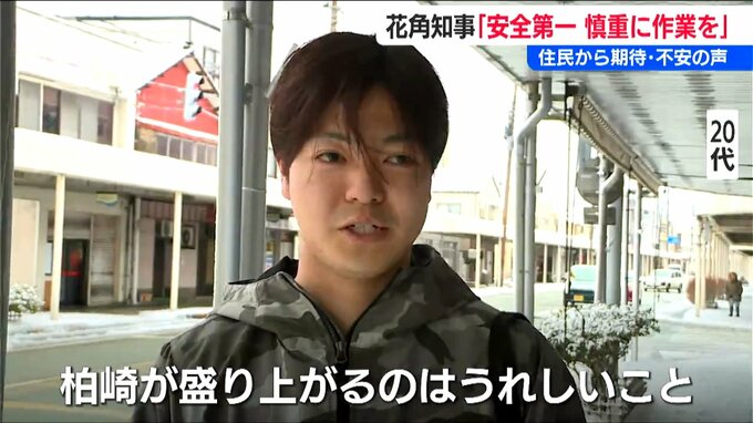 柏崎刈羽原発の14年ぶりの稼働に対し、新潟県の花角 知事は「安全第一で慎重に作業を進めてほしい」と述べました。また、住民からは期待や不安の声が聞かれました。