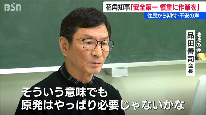 【花角 知事】「安全第一、慎重に作業を進めていただきたいということに尽きる。十数年ぶりに起動するということで、異状が起きないかどうか県としてもしっかりチェックしていきたい