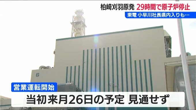 14年ぶりの再稼働からわずか29時間で原子炉を停止することになった、新潟県の柏崎刈羽原発6号機。今後のスケジュールについて、東京電力の小早川智明社長は「現時点でどのくらい変わるかは判断できない」と述べました。