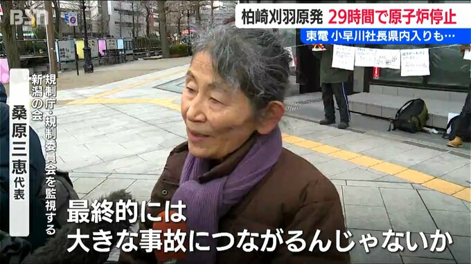 【規制庁・規制委員会を監視する新潟の会 桑原三恵 代表】「原因がよくわからないいろいろなトラブルを起こしながら、最終的には大きな事故につながるんじゃないか。再稼動をしようという話は一旦踏みとどまっていただいて、やめていただきたい」