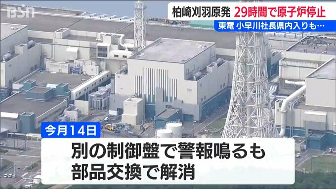 東電によりますと、再稼働前の1月14日にも別の制御盤で警報が鳴ったことがありましたが、このときは装置の電気部品を交換したことで解消されていました。