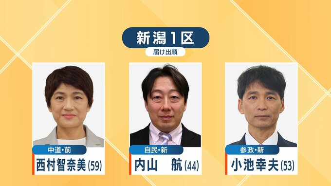 新潟1区に立候補したのは、届け出順に以下の5人です。