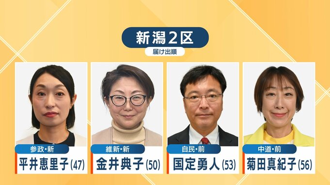 新潟2区に立候補したのは、届け出順に以下の4人です。