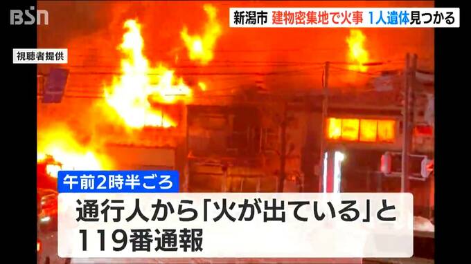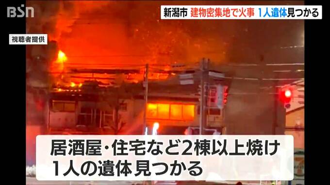 29日未明、JR新潟駅近くの密集地で住宅や店舗など2棟以上を焼く火事があり、焼け跡から1人の遺体が見つかりました。