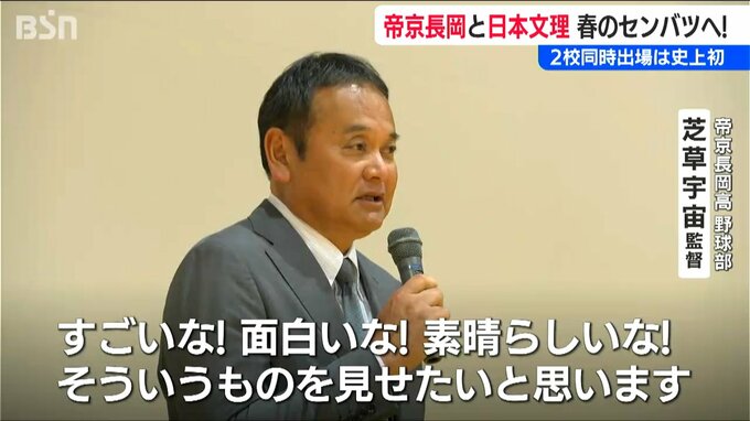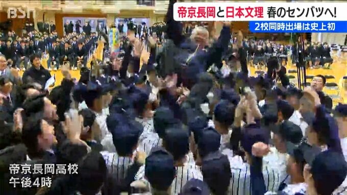 春の選抜高校野球の出場校が30日発表され、新潟県からは帝京長岡と日本文理の2校が選ばれました。一般選考枠での2校同時出場は史上初の快挙です。