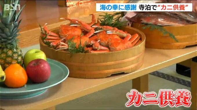 魚の市場通りで知られる新潟県長岡市寺泊地域で海の幸に感謝を込めて恒例の『カニ供養』が行われました。