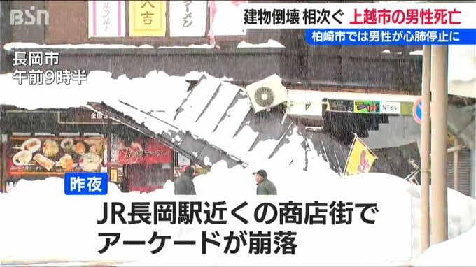 一方、長岡市では2日夜、JR長岡駅からほど近い商店街のアーケードが崩落しました。