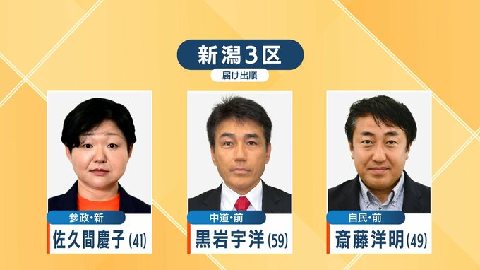 27日に公示された『衆議院選挙』で、新潟3区に立候補したのは、届け出順に