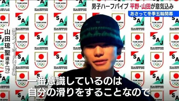 【スノーボード男子ハーフパイプ 日本代表 山田琉聖 選手】「小さいころからオリンピックを目指していたのもあって夢の存在だった。やっぱり目標は狙ってるんですけど、一番意識しているのは自分の滑りをするっていうことなので、頭の中ではそんな意識はせずって感じですね」