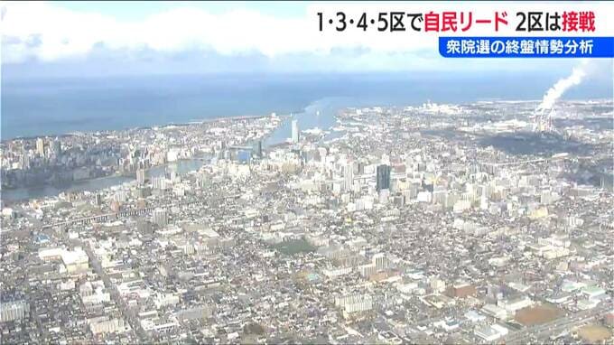 それによりますと、新潟県内の5つの選挙区のうち、1・3・4・5区で自民党の候補がリードしていて、2区は接戦となっています。