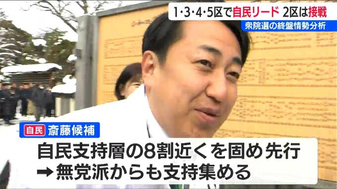 自民支持層の8割近くを固めた自民党の前職・斎藤洋明さんが先行し、無党派層からも支持を集めつつあります。