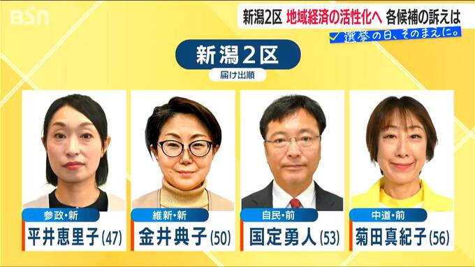 1月27日に公示された『衆議院選挙』で、新潟2区に立候補したのは、届け出順に、