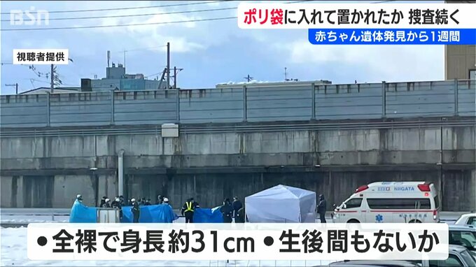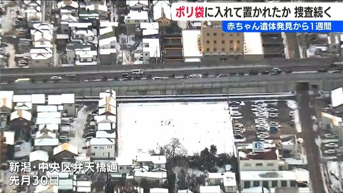 新潟市 中央区の路上で赤ちゃんの遺体が見つかってから6日で1週間です。赤ちゃんはポリ袋に入れられた状態で置かれたとみられることが捜査関係者への取材で分かっています。