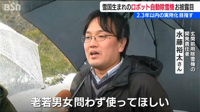 【玄関前除雪機の開発責任者 水藤裕太さん】「自律的に動くので、誰でも使えるところが売り。老若男女問わず使ってほしい」