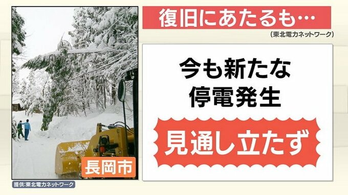 大雪の影響で発生した新潟県内各地の停電は、長いところでは3日経ってもまだなお続いています。