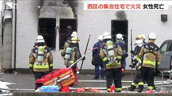 新潟市西区で7日朝、集合住宅が燃える火事があり、女性が死亡しました。