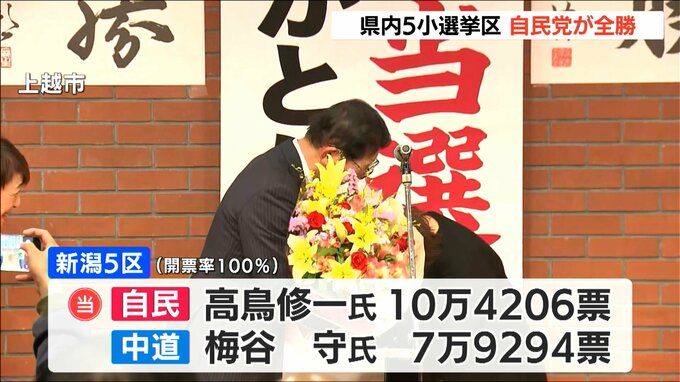 新潟では5つの小選挙区全てで自民党の候補が勝利しました。