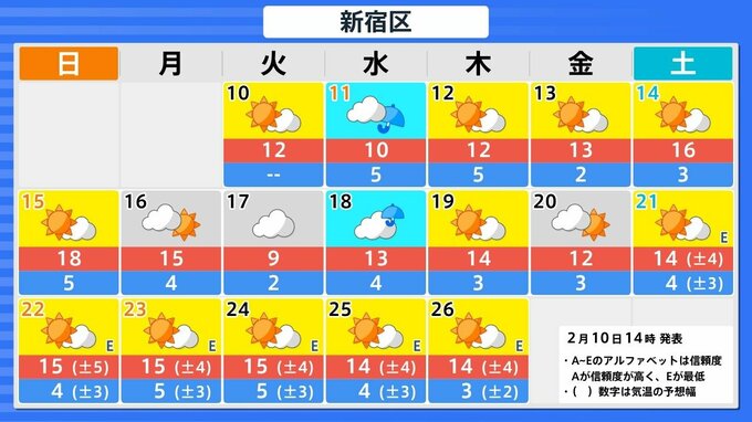 関東甲信地方: 2月15日頃から「かなりの高温」