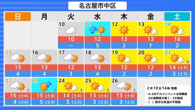 東海地方: 2月15日頃から「かなりの高温」